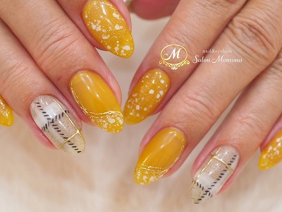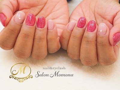 ラメとワンカラーの組み合わせで、可愛く落ち着いた雰囲気に♡