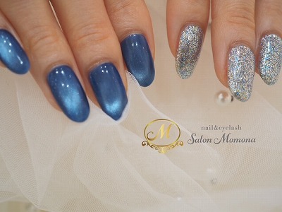 新色のブルーを使ったガラスマグネットネイル。透明感と奥行きのあるデザインが魅力です。