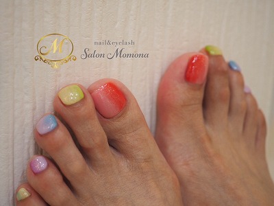 そして店内サンプルでも人気の「カラフルグラデーション」は、指先に明るさと華やかさをプラス。色の組み合わせも自由自在で、お好きな色味で楽しんでいただけます。