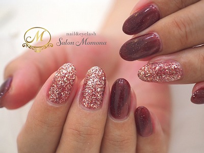 続いて、エメナの新色「flashマグネット ボルドー」とオリジナルラメの組み合わせ。