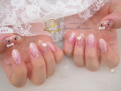 派手すぎず、大人でも楽しめるキティネイルに仕上がりました。